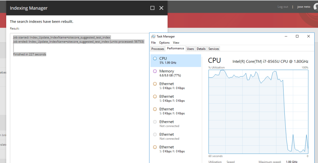 Below, we can see the usage of CPU before and after a manual re-index