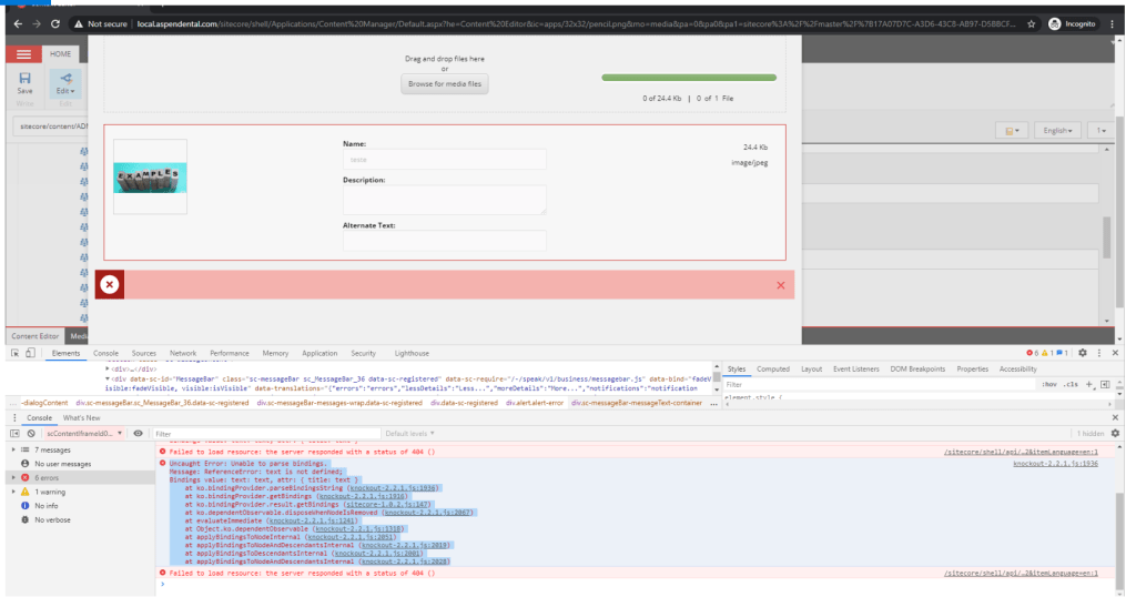 Symptom: The user tries to upload an existing image , however Sitecore shows an error without any message.