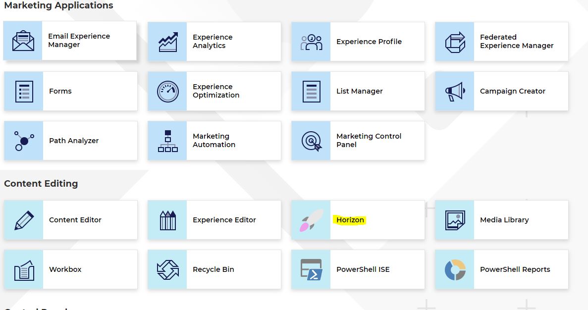 Click on the icon and open Sitecore Horizon, it should look the same as below