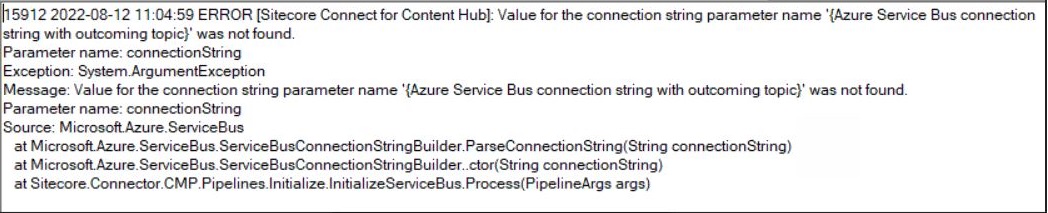 15912 2022-08-12 11:04:59 ERROR [Sitecore Connect for Content Hub]: Value for the connection string parameter name ‘{Azure Service Bus connection
