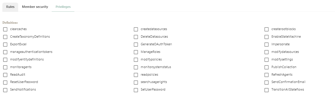 However, there are quite a few other options in the “Privileges ” tab, and this will used for some other cases , for the purpose of this demo, lets select one of those Definitions and play with it .