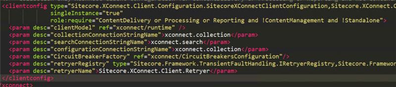 <clientConfig>node (within the correctrole:required="Content Delivery"section): <param desc="searchConnectionStringname">xconnect.search</param>